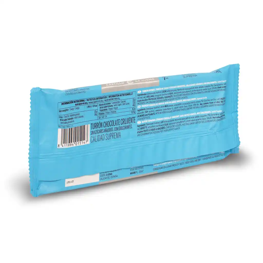 Información adicional sobre el Turrón Chocolate Crujiente Sin Azúcar