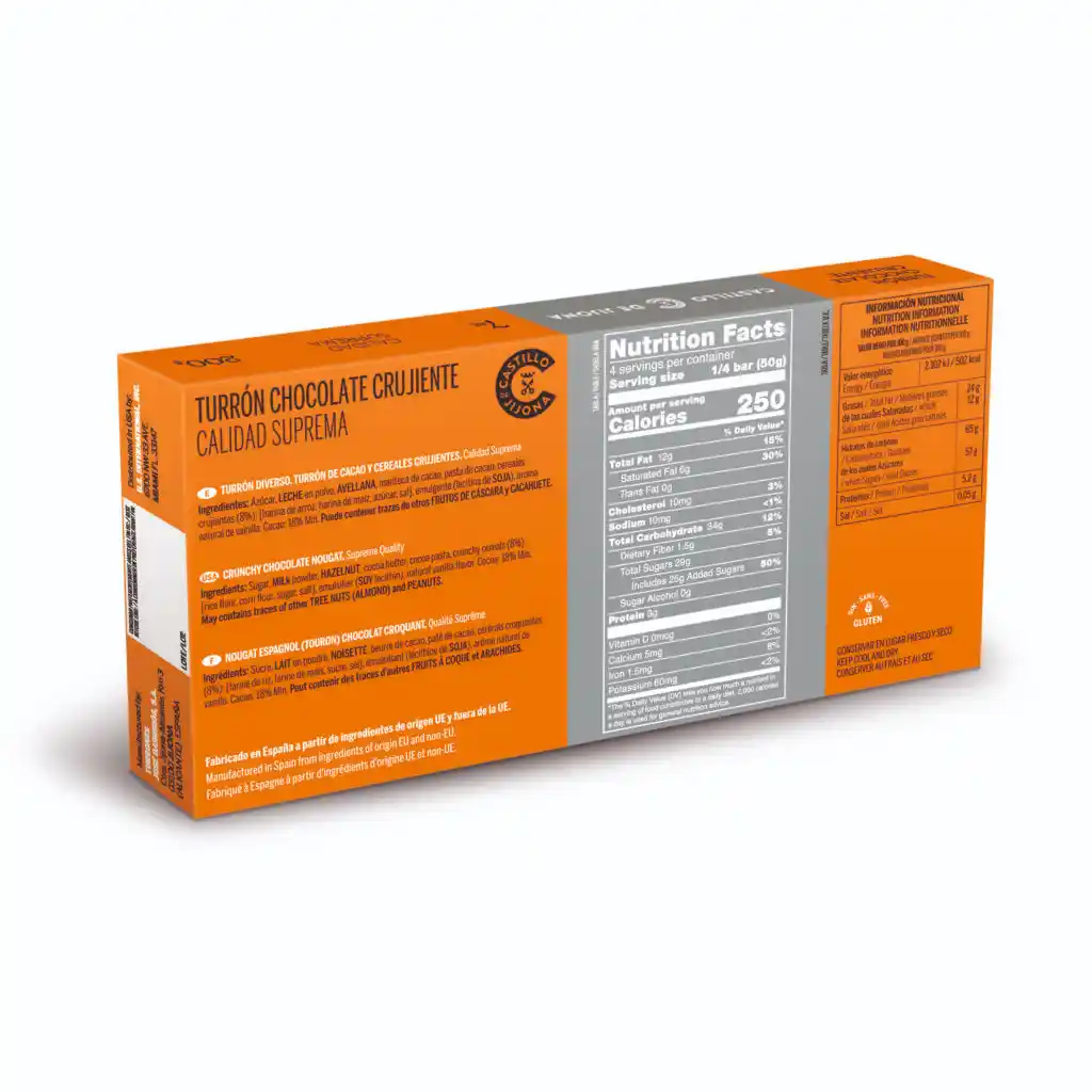 Nuestro Turrón Chocolate Crujiente es una elección ideal para quienes desean disfrutar de la auténtica experiencia del chocolate con un toque de crujiente. Descubre la autenticidad y calidad de Castillo de Jijona con este turrón que celebra la mezcla de sabores y texturas tradicionales.